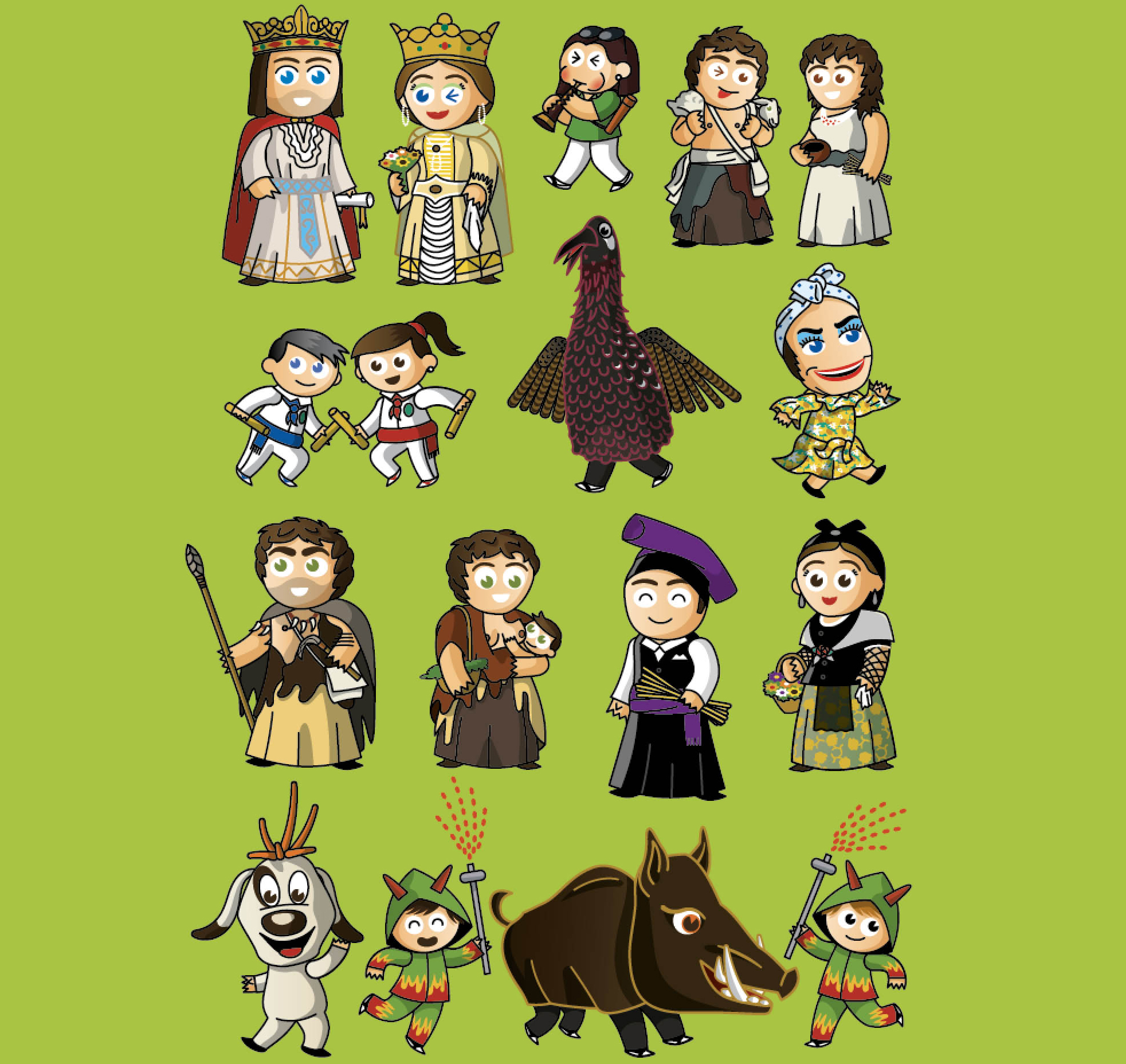 La festa major de l’Espluga de Francolí és una explosió de tradició i diversió! Aquesta samarreta infantil reuneix els personatges més estimats del seguici popular de l’Espluga: els gegants vells Ponç Hug i Beatriu, els gegants i gegantons neolítics, l’ocell francolí, el Ball de Bastons, els gegants pubills de la Santíssima Trinitat amb la seva característica gorra musca, el Senglar, els Diables i els capgrossos Rovelló i la Gitana.